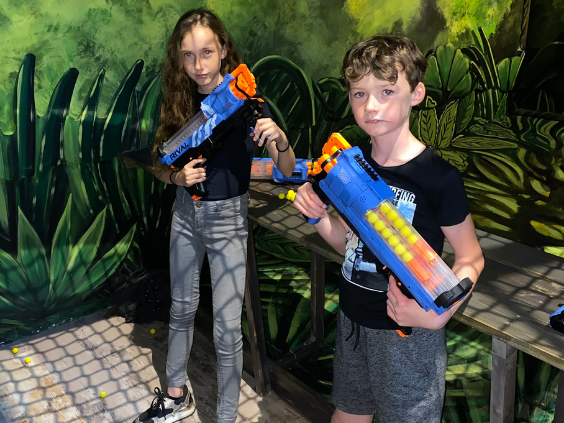 Armé d’un pistolet NERF à balles en mousse, tirez sur des cibles et entrez en compétition avec d’autres joueurs !