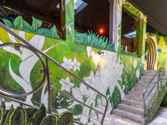 -table dressée avec décoration sur le thème de "La jungle à Noël"