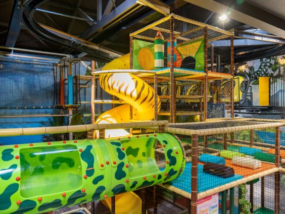 Vos enfants iront de surprise en surprise en traversant cette jungle : escalader les tours de grimpe, ramper dans les tunnels, monter à la corde, glisser dans le toboggan à spirale...